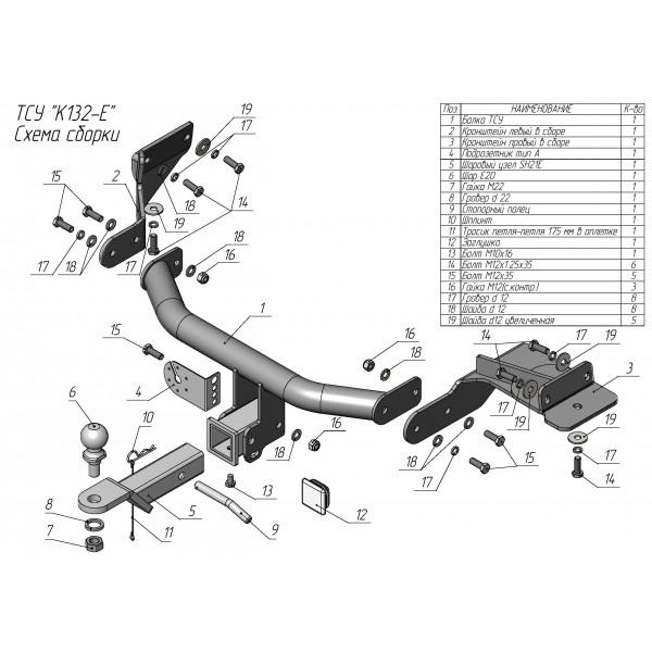 выреза бампера. Тип шара: E. Нагрузки: 1500/100 кг, масса фаркопа 18,5 кг (без